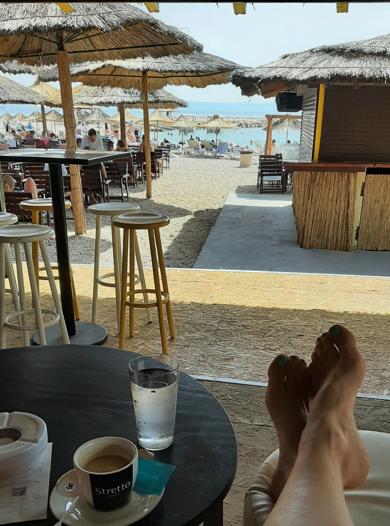 Врева на риви постаје све већа, а ми размишљамо да ли ћемо сести да попијемо кафу усред те гужве, или ћемо се, ипак, измаћи малко даље, у неки кафић поред плаже. Ћерки се не седи у кафићу, кафу не пије, а и жели да се што пре брчне у мору.